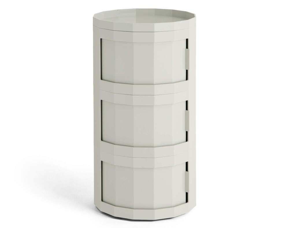 Vyšší multifunkčný stolík Facet Cabinet 30 s troma dvierkami, ktorý navrhol holandský dizajnér Stefan Scholten pre dánsku značku HAY. Farba: svetlosivá.