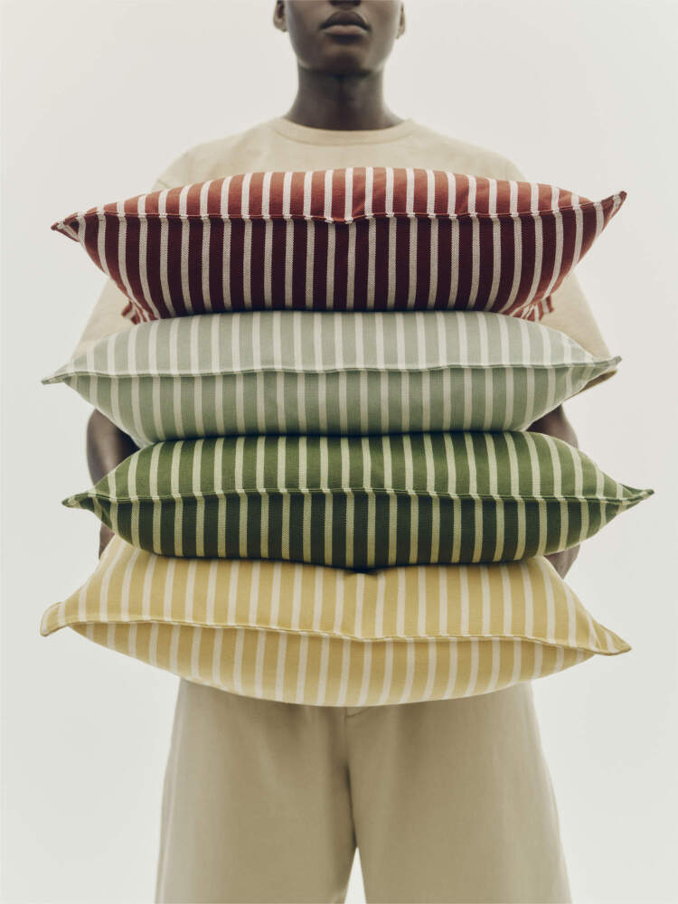Shopping from the EU? Switch to Terrazza Cushion, yellow bold stripe