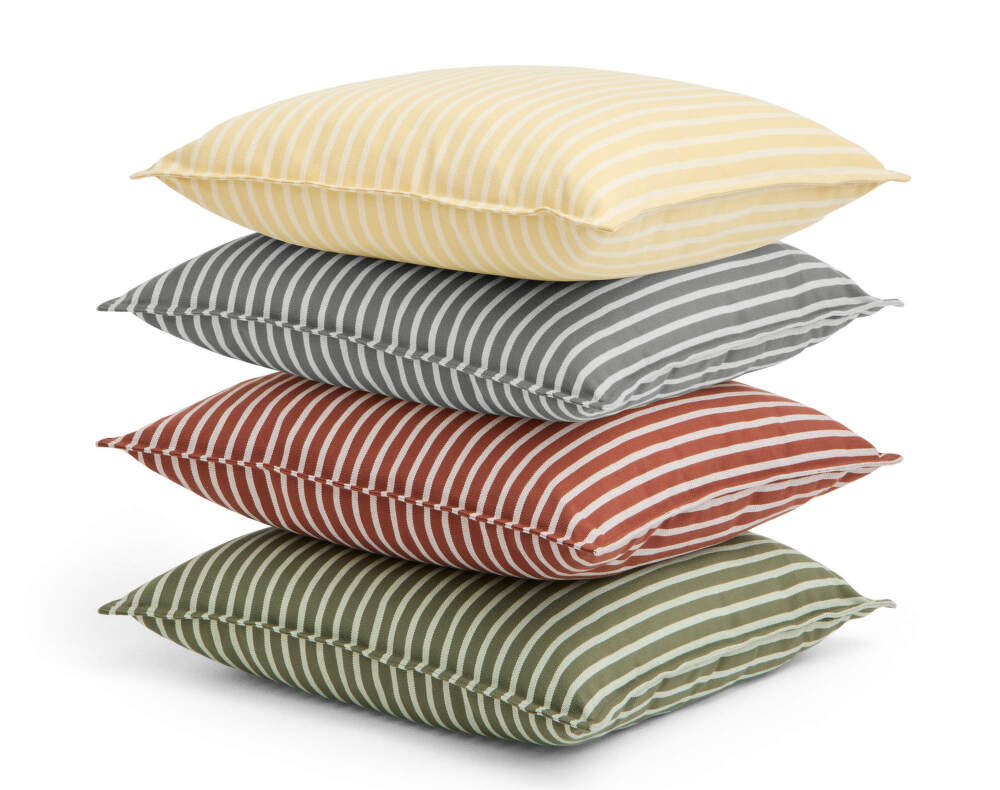Farebný vankúš Terrazza, vhodný na vonkajšie použitie, od dánskej značky HAY. Farba: žlté pásiky.