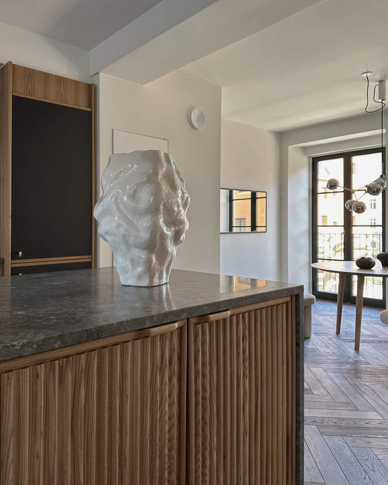 Váza Karachi Big je najväčšia verzia v kolekcii, ktorá skúma vzájomné pôsobenie tvaru, svetla a materiálu. Je vyrobená z ručne fúkaného skla s mierne nepravidelným povrchom, ktorý láme svetlo a rozptyľuje ho do jemných odleskov.
