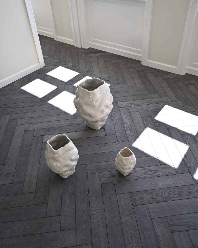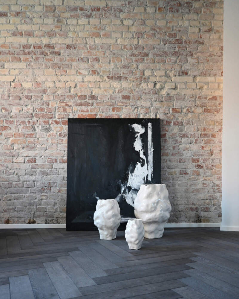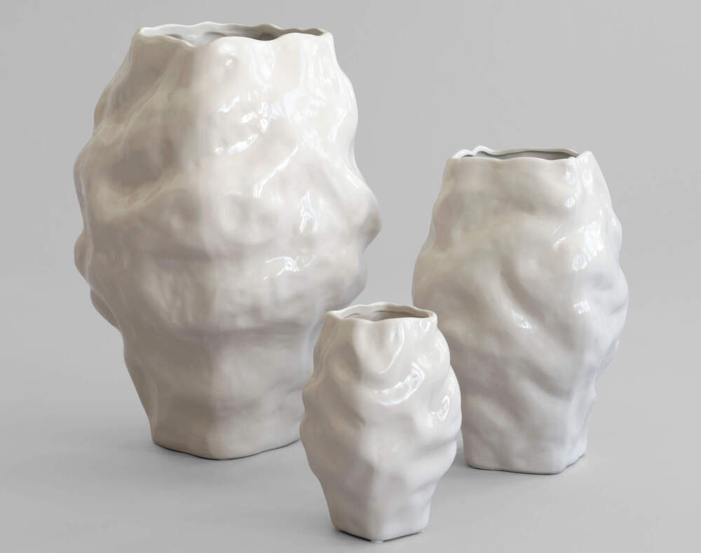 Váza Karachi Big je najväčšia verzia v kolekcii, ktorá skúma vzájomné pôsobenie tvaru, svetla a materiálu. Je ručne tvarovaná a glazovaná, čo jej dodáva jedinečný charakter. Kombinácia lesklej glazúry a organických kriviek vytvára dojem prirodzenej elegancie a dodáva váze dekoratívny a umelecký rozmer.