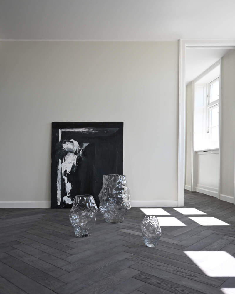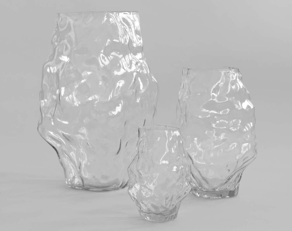 Váza Karachi Medio je strednou verziou v kolekcii, ktorá skúma vzájomné pôsobenie tvaru, svetla a materiálu. Je vyrobená z ručne fúkaného skla s mierne nepravidelným povrchom, ktorý láme svetlo a rozptyľuje ho do jemných odleskov.