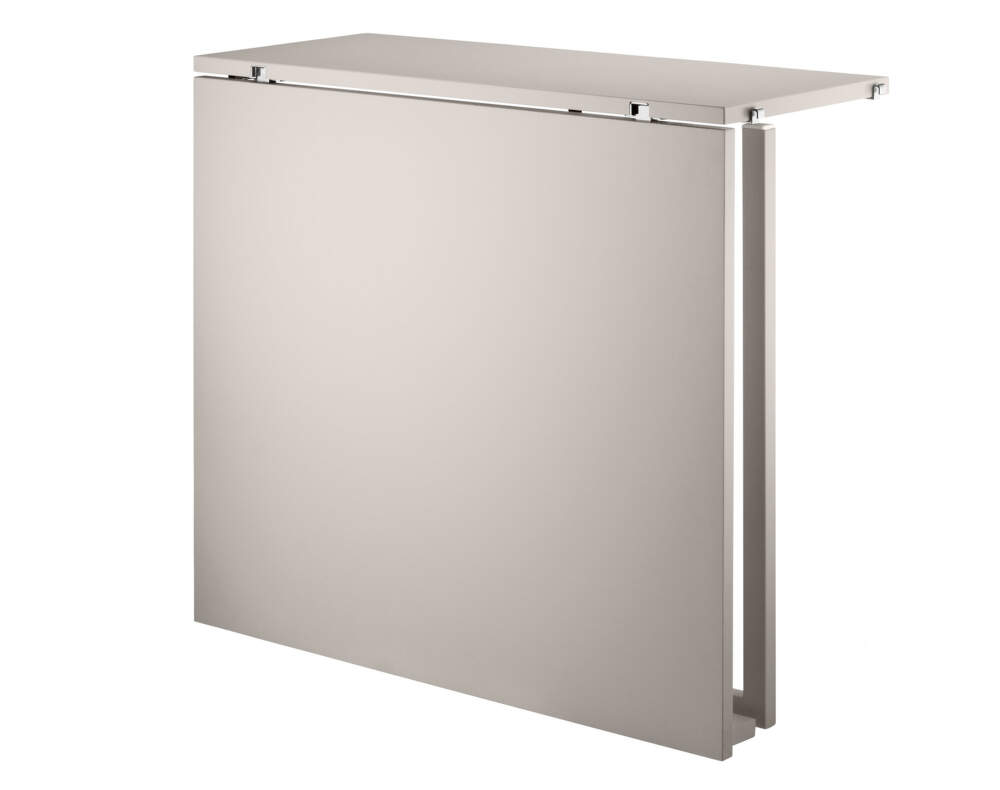 Výklopný stolík zo série String System je kompatibilný s bočnými panelmi s hĺbkou 30 cm z rovnakej kolekcie. Rozložený stolík, ku ktorému sa vojdú až tri stoličky, je skvelou alternatívou k malému jedálnemu stolíku do kuchyne alebo stolíku pracovnému. Pri zložení stolíku je možné využívať vzniknutý 30 cm hlboký úložný priestor.