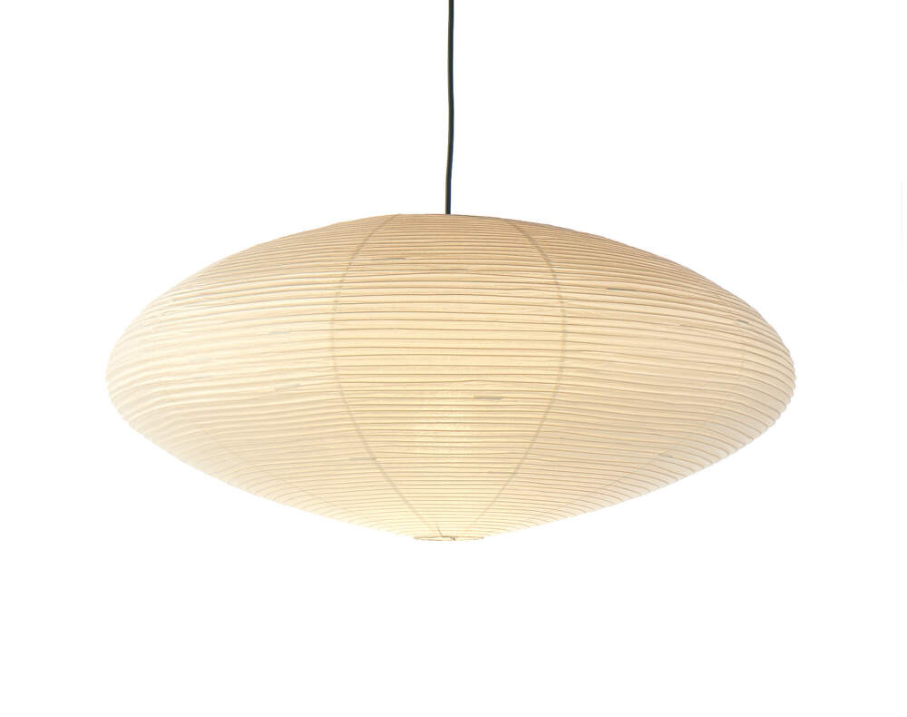 Vzdušné závesné svietidlo Akari 15A o priemere 88 cm od švajčiarskej značky Vitra, ktoré navrhol japonsko-americký umelec Isamu Noguchi.