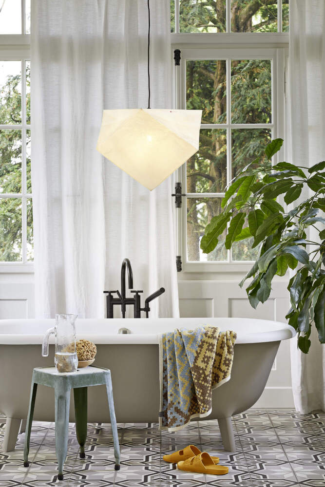 Každá lampa je ručne vyrábaná v tradičnej dielni Ozeki v japonskom meste Gifu. Konštrukciu tvorí bambusové rebrovanie napnuté cez pôvodné drevené formy, ktoré následne pokrýva papier washi získavaný z kôry morušovníka. Výsledkom je ľahké, skladacie tienidlo s jemnou štruktúrou, ktoré rozptyľuje jemné teplé svetlo. Svetelným zdrojom je LED s päticou E27, ktorá vytvára príjemné svetlo podporujúce intímnu atmosféru interiéru.