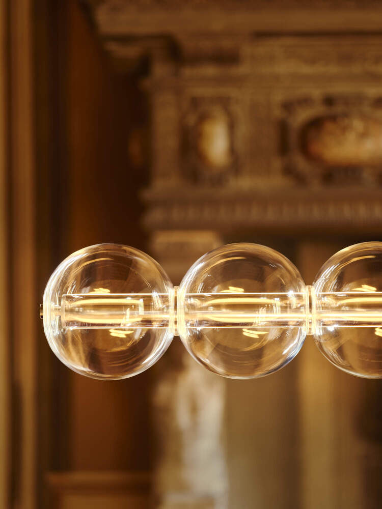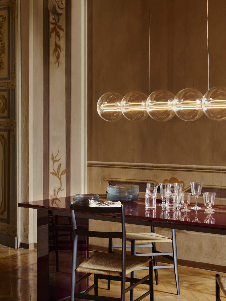 Lineárne sklenené svietidlo Luce Sferica S1, ktoré navrhol Ronan Bouroullec pre taliansku značku Flos.
