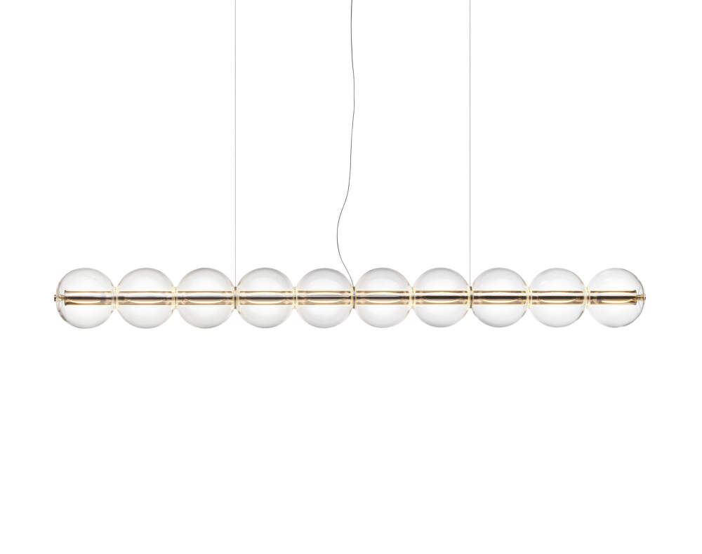 Lineárne sklenené svietidlo Luce Sferica S2, ktoré navrhol Ronan Bouroullec pre taliansku značku Flos.