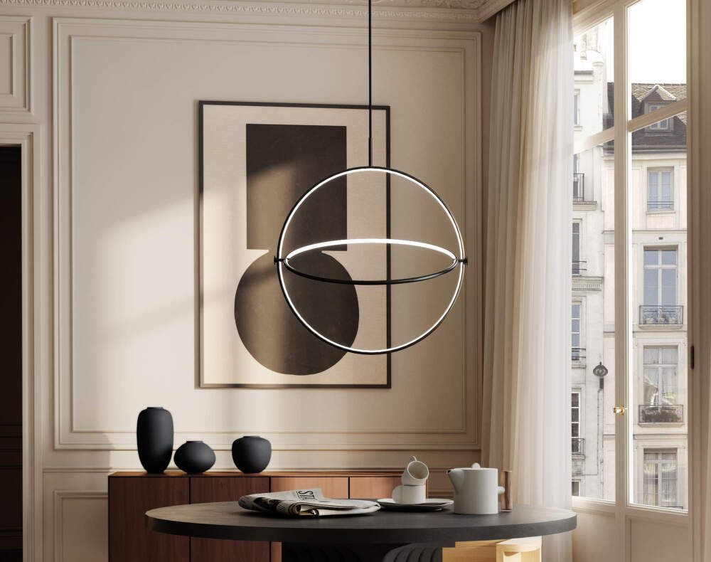 Závesné svetlo Maru prináša do interiéru kombináciu precíznej geometrie, pohybu a teplého osvetlenia. Jeho charakteristický kruhový dizajn vychádza z princípov minimalistického umenia a je inšpirovaný japonskou estetikou, kde „maru“ znamená kruh alebo obvod.