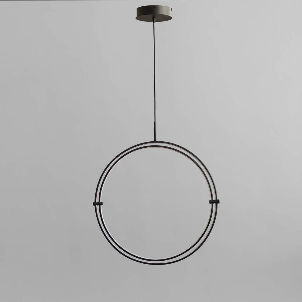 Každé svietidlo pozostáva z dvoch prepojených kruhov s integrovaným LED osvetlením, ktoré jemne osvetľuje ich vnútorné kontúry. Pružné spoje umožňujú pohyb vnútorného kruhu, čím svietidlo získava nielen dynamický vzhľad, ale aj variabilitu usporiadania.