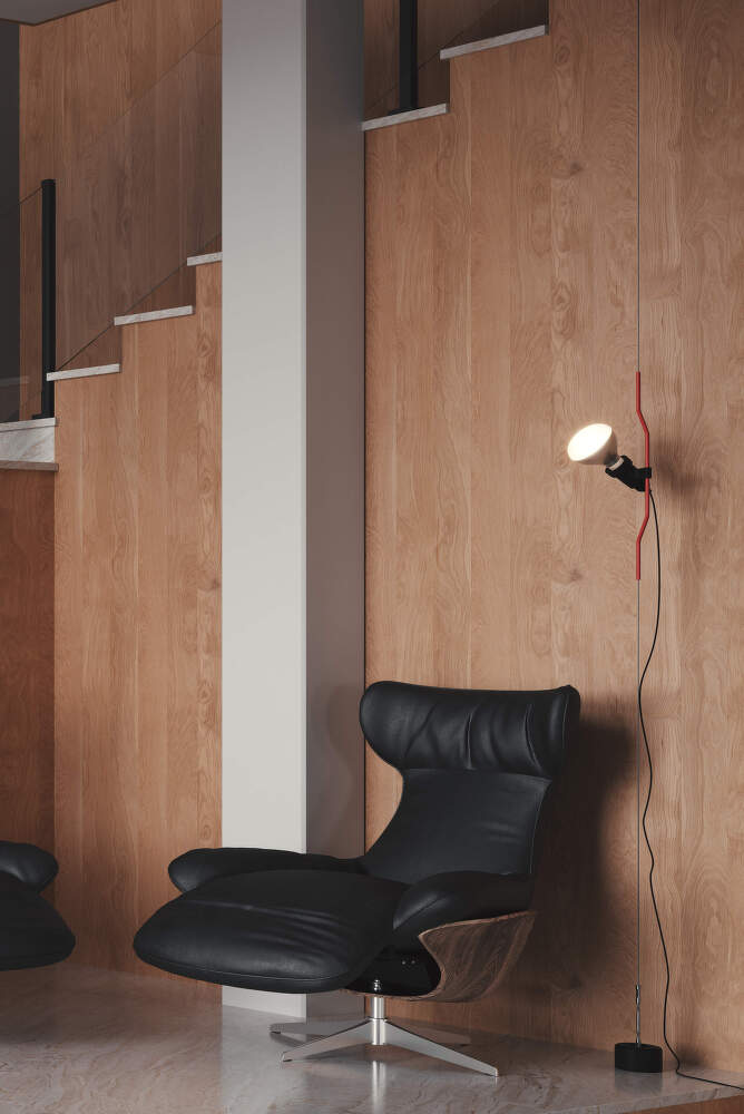 Svietidlo pozostáva z vertikálne natiahnutého oceľového lana dlhého 4 metre, ktoré vedie od stropu k podlahe. Samotná svetelná jednotka sa pohybuje pozdĺž tohto kábla, takže môžete ľahko meniť jej výšku a nasmerovať svetlo presne tam, kde je potrebné. Svietidlo funguje skvele ako cielené svetlo na čítanie, ale aj ako jemné ambientné svetlo odrážajúce sa od steny alebo stropu.