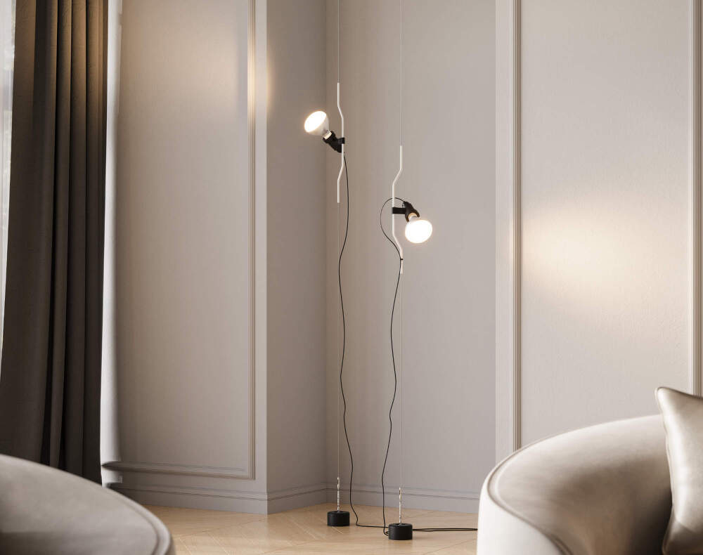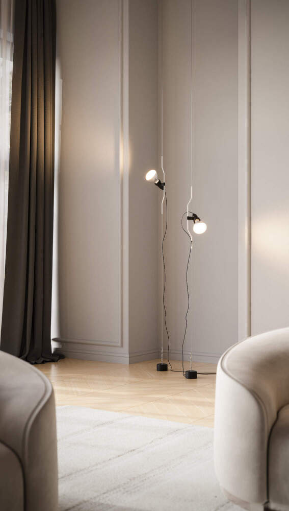Svietidlo pozostáva z vertikálne natiahnutého oceľového lana dlhého 4 metre, ktoré vedie od stropu k podlahe. Samotná svetelná jednotka sa pohybuje pozdĺž tohto kábla, takže môžete ľahko meniť jej výšku a nasmerovať svetlo presne tam, kde je potrebné. Svietidlo funguje skvele ako cielené svetlo na čítanie, ale aj ako jemné ambientné svetlo odrážajúce sa od steny alebo stropu.