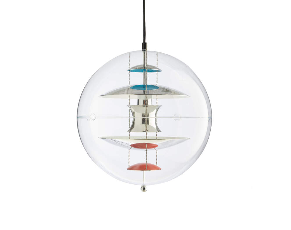 Závesné svietidlo VP Globe patrí k najikonickejším návrhom Vernera Pantona z rokov 1969–1970. Transparentná guľová forma odráža jeho fascináciu novými materiálmi aj presvedčenie, že svetelný zdroj nemá byť priamo viditeľný. Výsledkom je svietidlo, ktoré pôsobí futuristicky a zároveň vytvára mimoriadne príjemné ambientné svetlo.