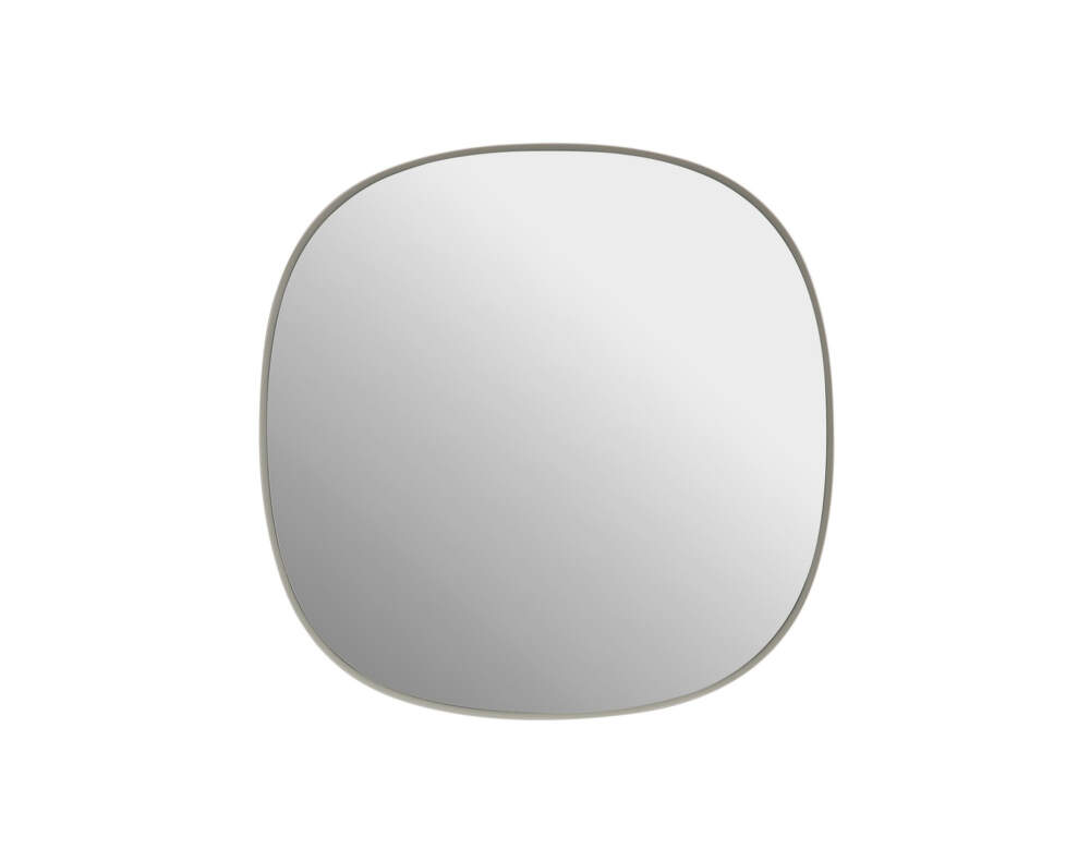 Menšie zrkadlo Framed z kolekcie nástenných dekoratívnych zrkadiel s výrazným zaobleným rámom od dánské značky Muuto. Prevedenie: rozmer 40x40 cm, sivý rám s čírym sklom.