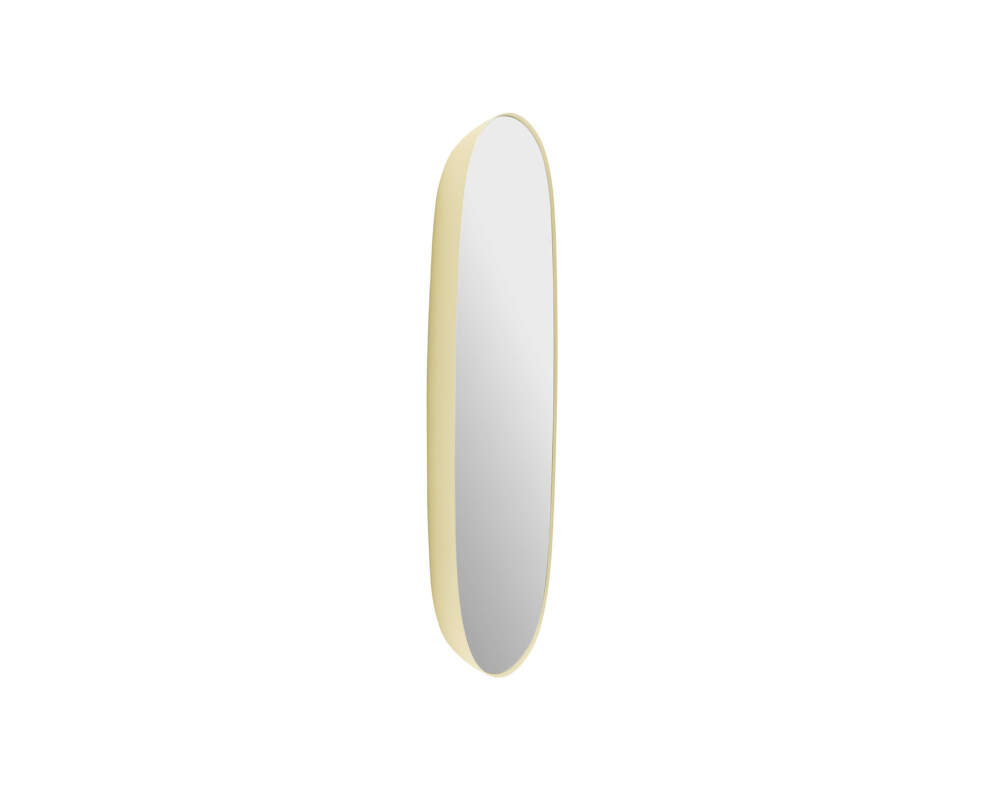 Menšie zrkadlo Framed z kolekcie nástenných dekoratívnych zrkadiel s výrazným zaobleným rámom od dánské značky Muuto. Prevedenie: rozmer 59x44 cm, svetložltý rám s čírym sklom.
